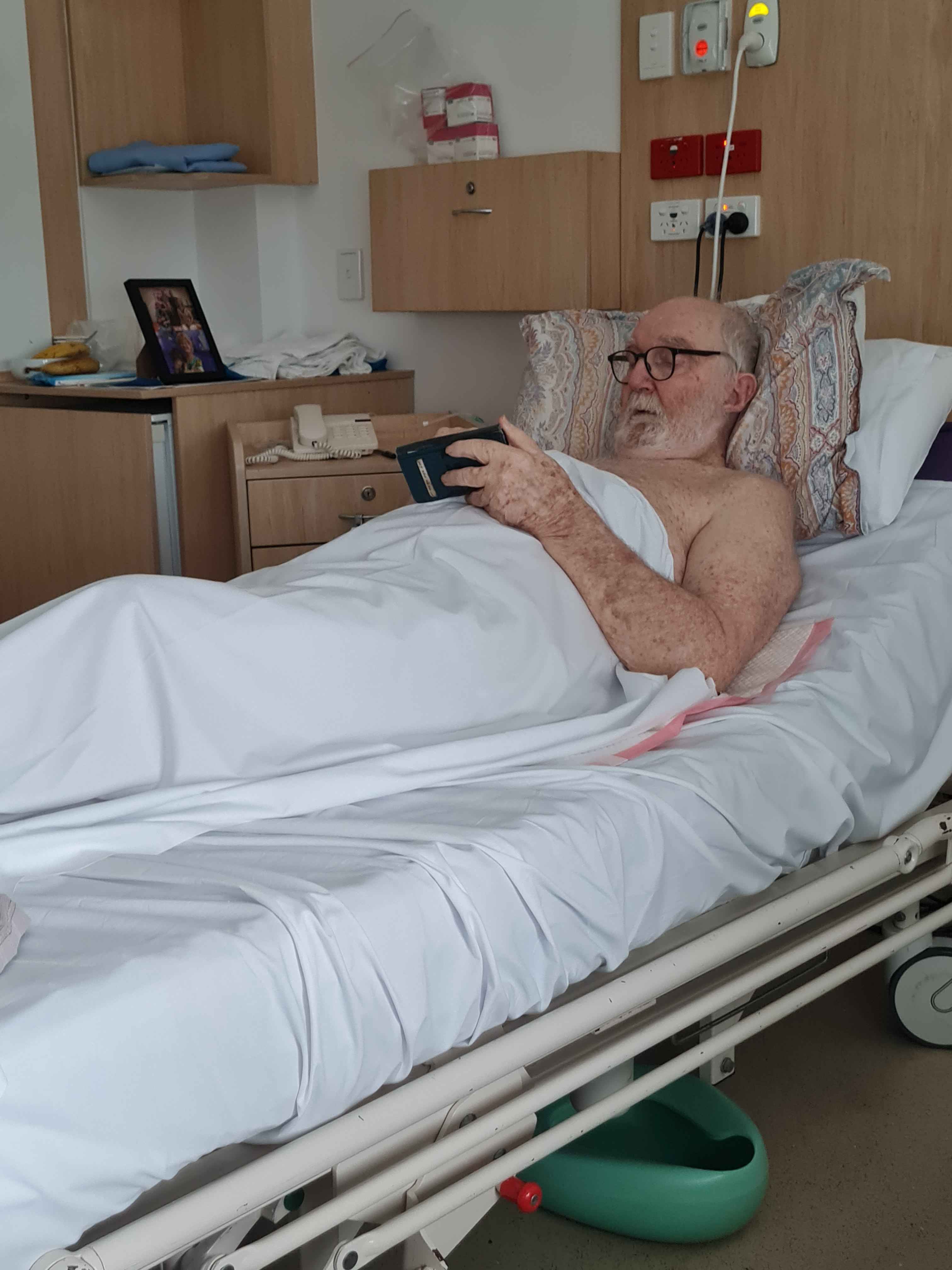 Neal playing phone games resting in Hospital
