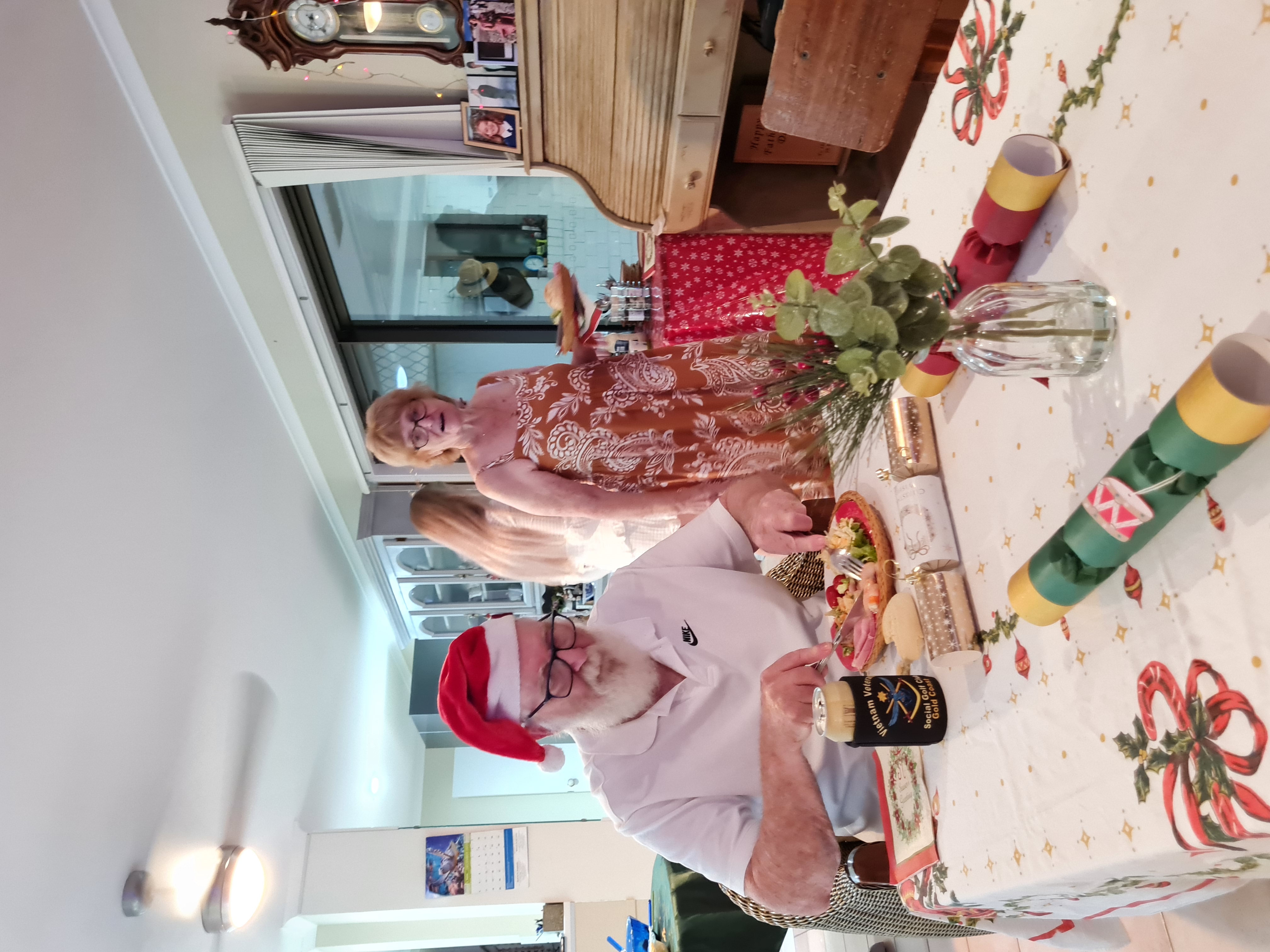 Neal tucking in to his Christmas Lunch with Gorgia & Sharon